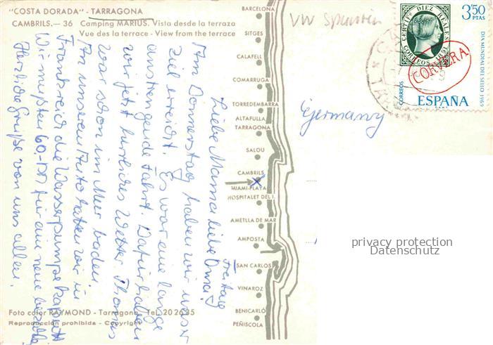 74104829 old postcard Cambrils Costa Dorada Tarragona ES Camping Marius Vista desde la terraza postalisch gelaufen Erhaltung siehe scans [WerneD78] KatCode: 11510