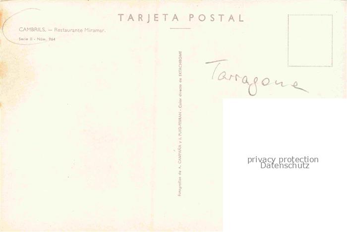 74156486 Cambrils Costa Dorada Tarragona ES Restaurante-Miramar Turm Wehrturm Terrasse Sonnenschirme Gaeste Costa-Dorada postalisch nicht gelaufen Erhaltung siehe scans [Karloger] KatCode: 11510