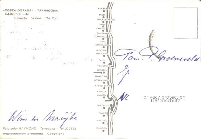 old postcard Cambrils Hafen postalisch gelaufen Erhaltung siehe scans