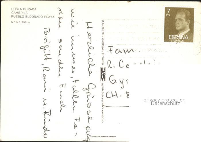 old postcard Cambrils Pueblo Eldorado Playa postalisch gelaufen Erhaltung siehe scans [NatalD47 kv014box]