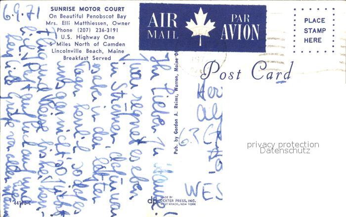 72456710 old postcard Camden Maine Sunrise Motor Court postalisch gelaufen Erhaltung siehe scans KatCode: 14140210000000