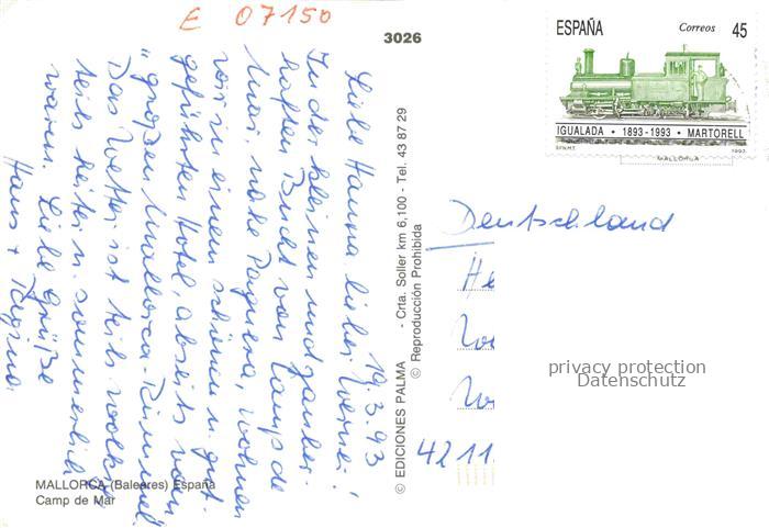 74006234 old postcard Camp de Mar MALLORCA ES Panorama postalisch gelaufen Erhaltung siehe scans [FriedD77] KatCode: 11510