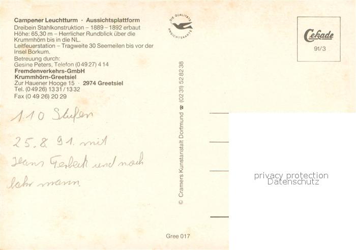73719935 Campen Emden Campener Leuchtturm postalisch nicht gelaufen Erhaltung siehe scans [FriedD77] KatCode: 11110003452014