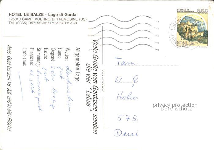 old postcard Campi Voltino di Tremosine Fliegeraufnahme Hotel le Balze postalisch gelaufen Erhaltung siehe scans