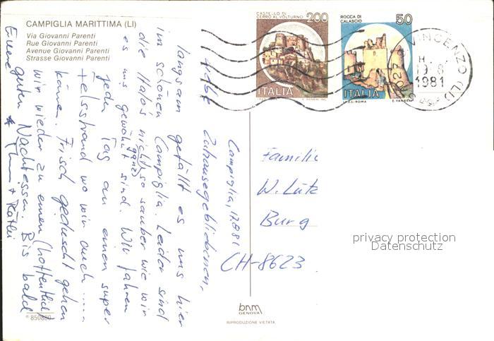 old postcard Campiglia Marittima Strasse Giovanni Parenti postalisch gelaufen Erhaltung siehe scans