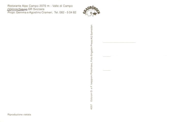 13920216 Campo GR Ristorante Alpe Campo Valle di Campo postalisch nicht gelaufen Erhaltung siehe scans [WerneD78] KatCode: 11470100305968