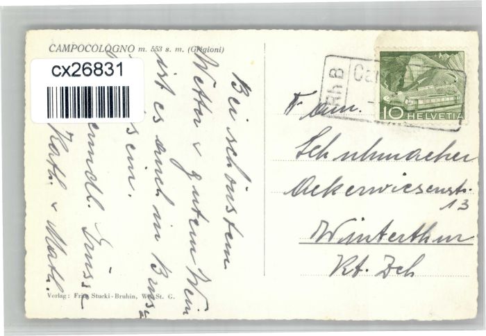 10850091 alte Postkarte Campocologno postalisch gelaufen KatCode: 11470100310992