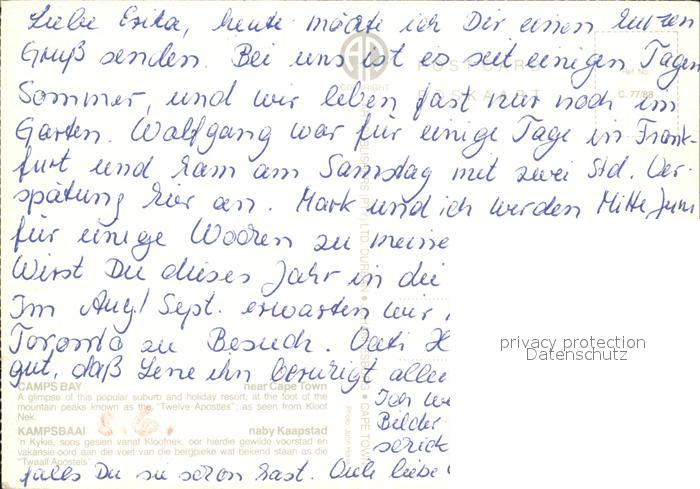 Camps Bay Cape Town Panorama postalisch nicht gelaufen Erhaltung siehe scans
