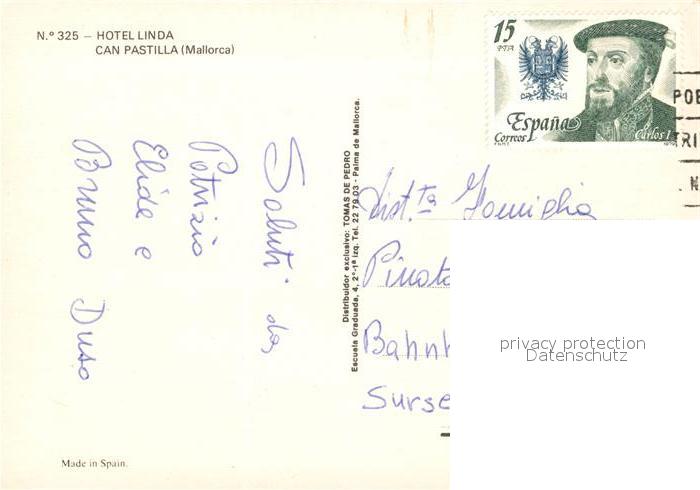 old postcard Can Pastilla Palma de Mallorca Hotel Linda postalisch gelaufen Erhaltung siehe scans [PaolaD17]