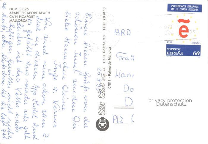 old postcard Can Picafort Mallorca Apart Picafort Beach postalisch gelaufen Erhaltung siehe scans