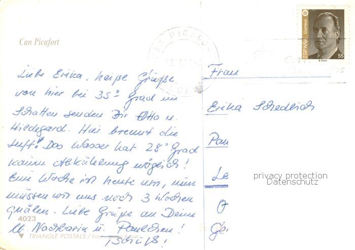 old postcard Can Picafort Mallorca ES Fliegeraufnahme postalisch gelaufen Erhaltung siehe scans [WerneD78]