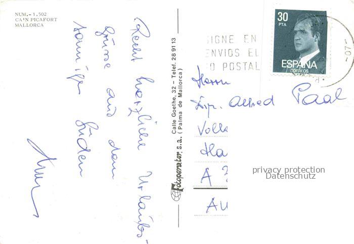 74042500 old postcard Can Picafort Mallorca ES Fliegeraufnahme postalisch gelaufen Erhaltung siehe scans [WerneD78] KatCode: 11510