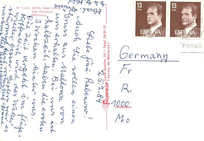 73905555 old postcard Can Picafort Mallorca ES Hotel Gran Vista Pool postalisch gelaufen Erhaltung siehe scans [WerneD78] KatCode: 11510