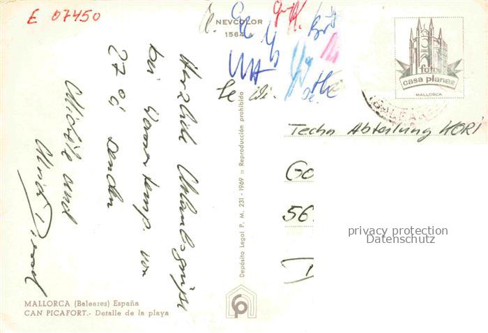 74006192 old postcard Can Picafort Mallorca ES La playa postalisch gelaufen Erhaltung siehe scans [FriedD77] KatCode: 11510