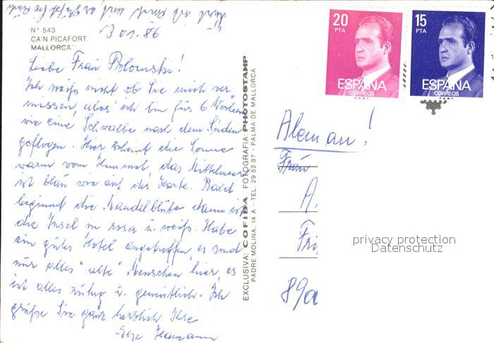 old postcard Can Picafort Mallorca Fliegeraufnahme postalisch gelaufen Erhaltung siehe scans [LiesaD40 kv021box]