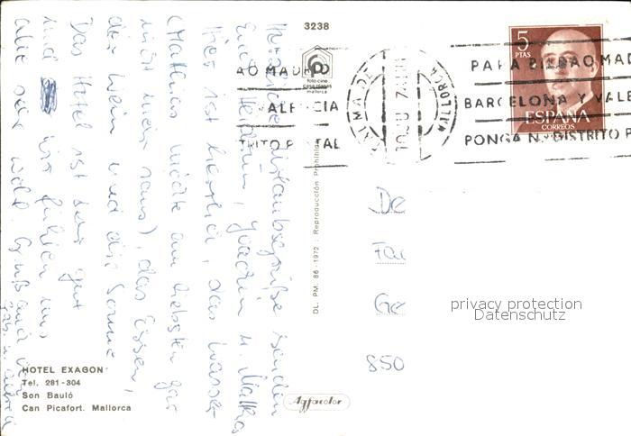 old postcard Can Picafort Mallorca Fliegeraufnahme Hotel Exagon postalisch gelaufen Erhaltung siehe scans [LiesaD40]