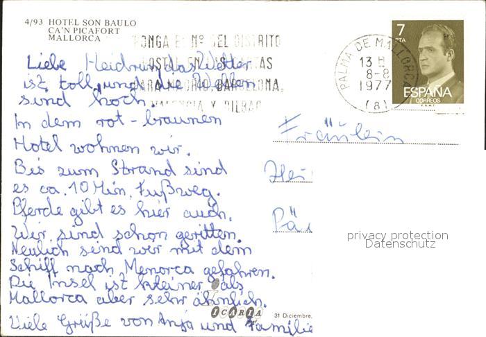 old postcard Can Picafort Mallorca Fliegeraufnahme Hotel Son Baulo postalisch gelaufen Erhaltung siehe scans