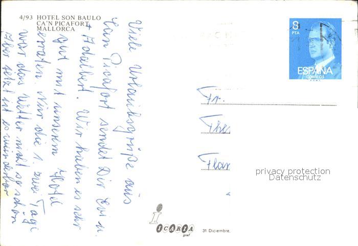 old postcard Can Picafort Mallorca Fliegeraufnahme Hotel Son Baulo postalisch gelaufen Erhaltung siehe scans