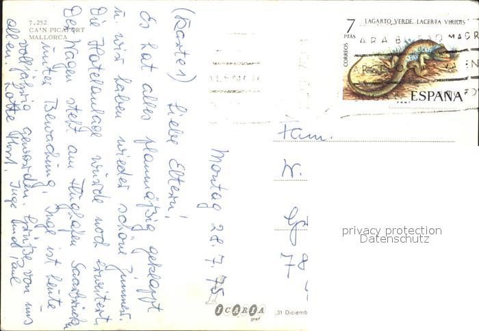 old postcard Can Picafort Mallorca Fliegeraufnahme mit Hotel postalisch gelaufen Erhaltung siehe scans [LiesaD40]
