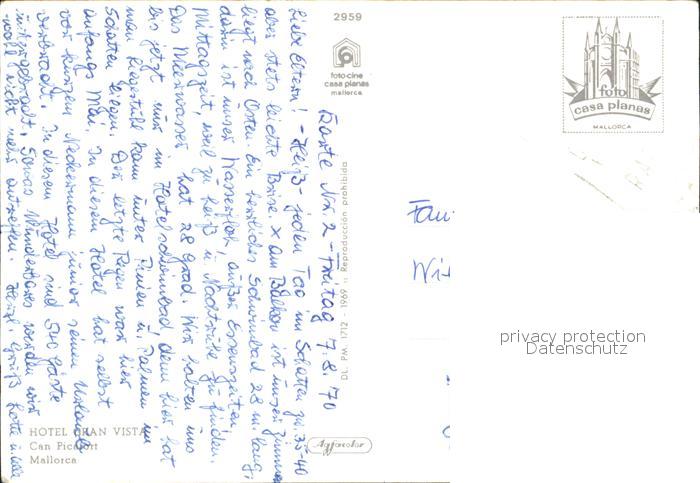 old postcard Can Picafort Mallorca Hotel Gran Vista postalisch gelaufen Erhaltung siehe scans [LiesaD40 kv021box]