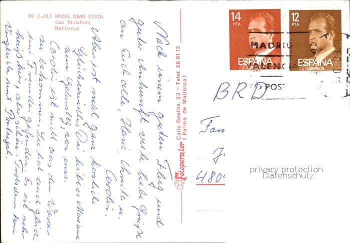 old postcard Can Picafort Mallorca Hotel Gran Vista Pool postalisch gelaufen Erhaltung siehe scans [WerneD78 kv017box]