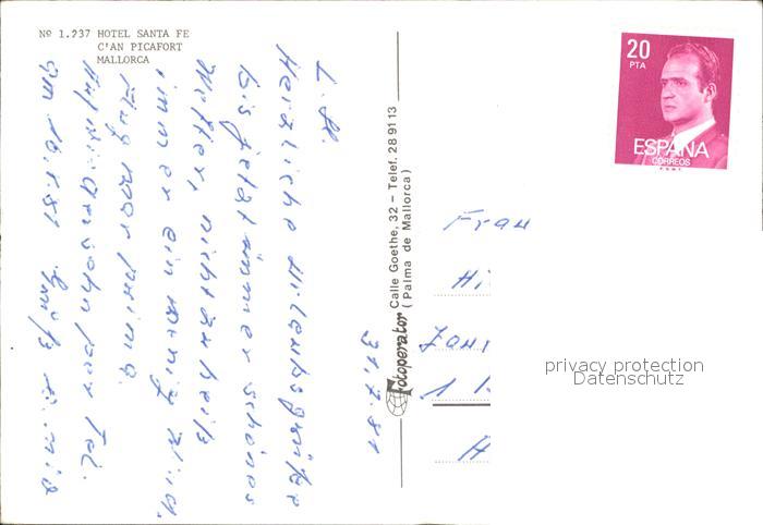 old postcard Can Picafort Mallorca Hotel Santa Fé postalisch gelaufen Erhaltung siehe scans