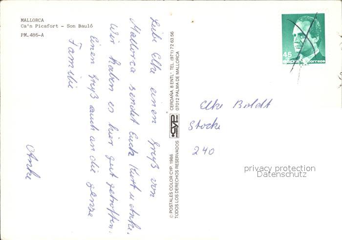 old postcard Can Picafort Mallorca Son Baulo Strand Hotel postalisch gelaufen Erhaltung siehe scans