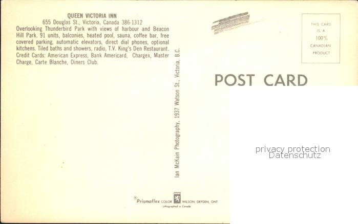 Canada State St. Victoria Queen Victoria Inn Hotel postalisch nicht gelaufen Erhaltung siehe scans