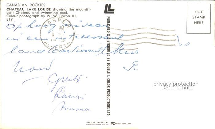 old postcard Canadian Rockies Chateau Lake Louise postalisch gelaufen Erhaltung siehe scans [KathaD75 kv015box]