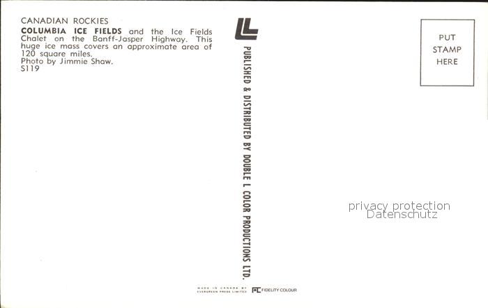 Canadian Rockies Colombia Ice Fields postalisch nicht gelaufen Erhaltung siehe scans