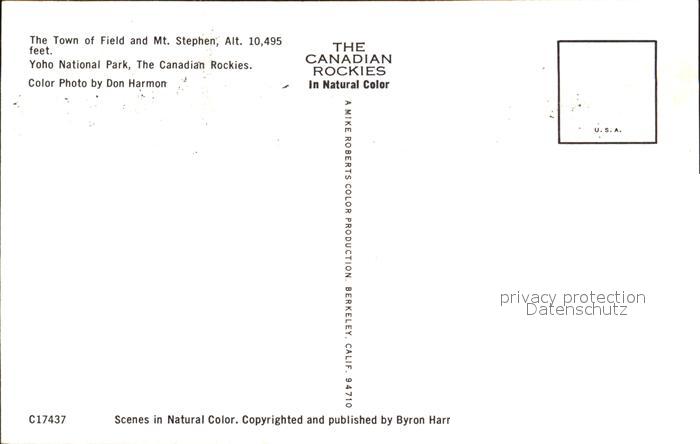 Canadian Rockies The Town of Field and Mt Stephen postalisch nicht gelaufen Erhaltung siehe scans