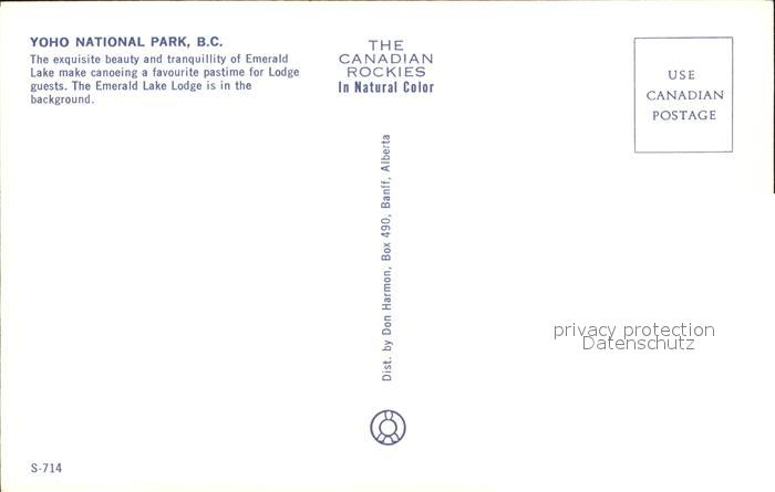 Canadian Rockies Yoho National Park Emerald Lake Bootspartie postalisch nicht gelaufen Erhaltung siehe scans