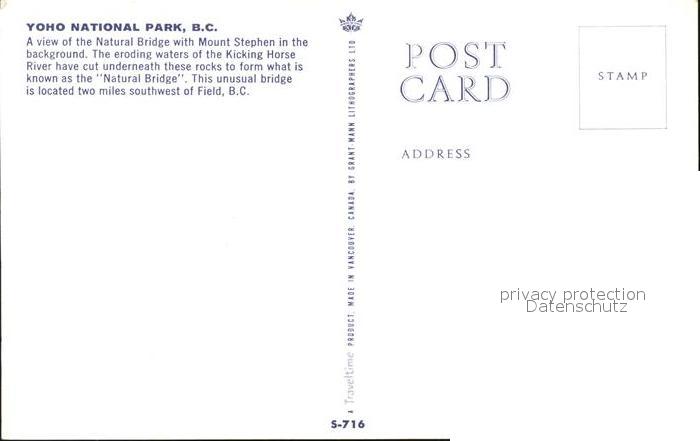 Canadian Rockies Yoho National Park Mount Stephen postalisch nicht gelaufen Erhaltung siehe scans