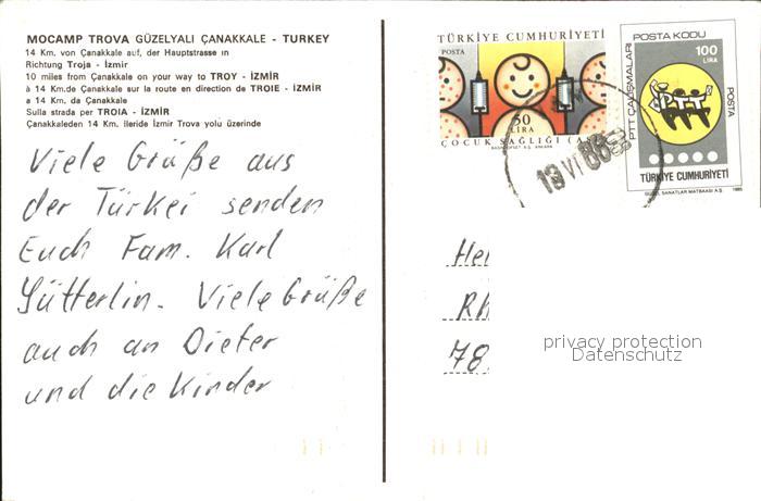 old postcard Canakkale Mocamp Trova Guezelyali Strandleben Camping postalisch gelaufen Erhaltung siehe scans