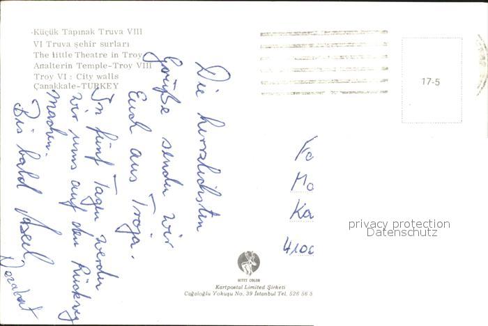 old postcard Canakkale Thearte Troy Analterin Temple Troy VIII postalisch gelaufen Erhaltung siehe scans