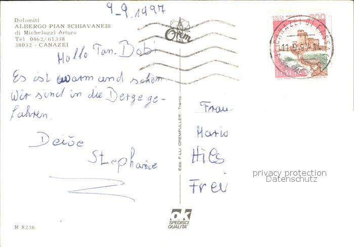 old postcard Canazei Albergo Pian Schiavaneis postalisch gelaufen Erhaltung siehe scans