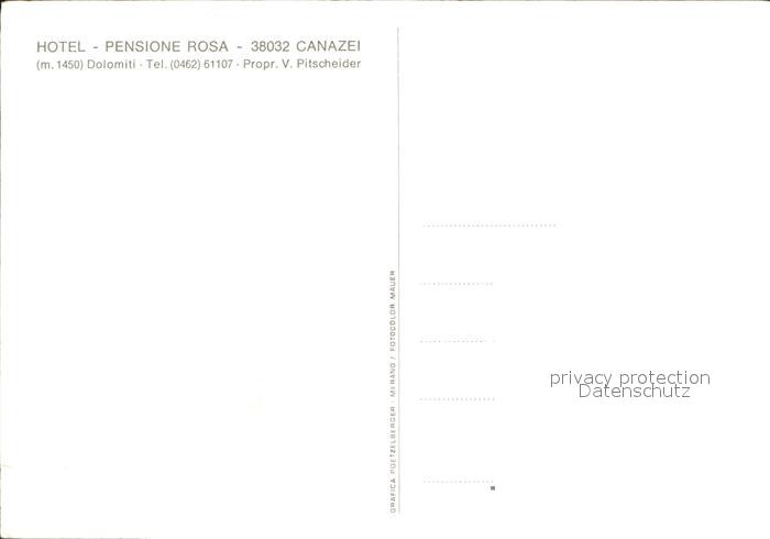 Canazei Hotel Pensione Rosa Dolomiten postalisch nicht gelaufen Erhaltung siehe scans