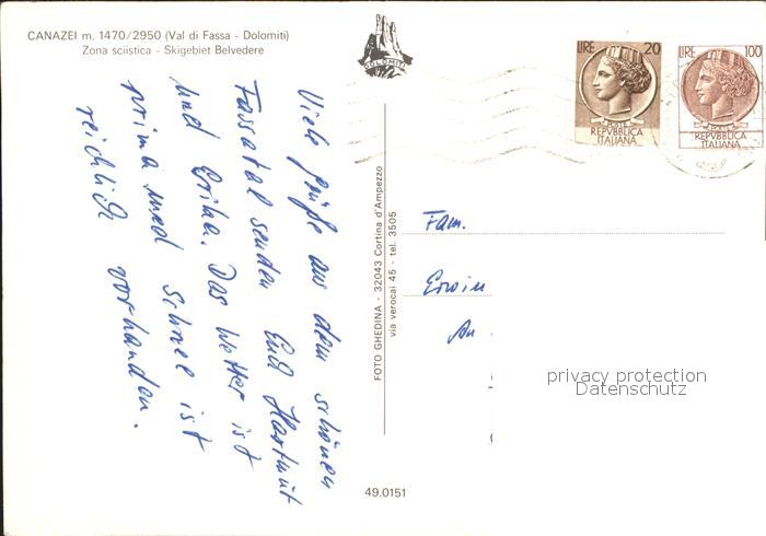 old postcard Canazei Skigebiet Belvedere Bergrestaurant Skilift postalisch gelaufen Erhaltung siehe scans