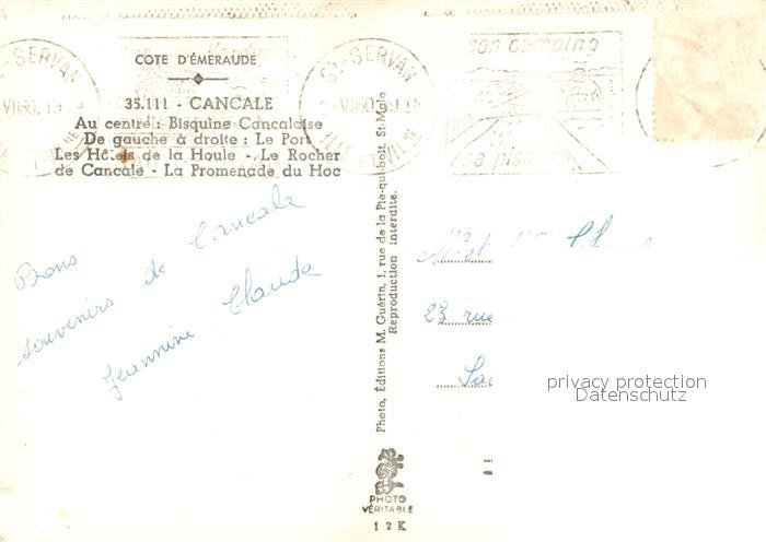 13582009 Cancale Bisquine Cancalaise Port Hôtels de la Houle Rocher de Cancale Promenade du Hoc postalisch gelaufen Erhaltung siehe scans [FriedD77] carte postale Frie Katcode 11170035435049