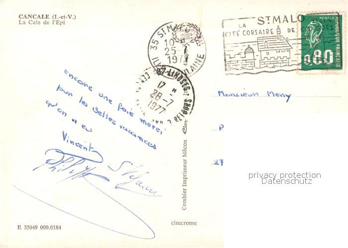13522556 carte postale Cancale Cote de l Epi postalisch gelaufen Erhaltung siehe scans [KathaD81] KatCode: 11170035435049