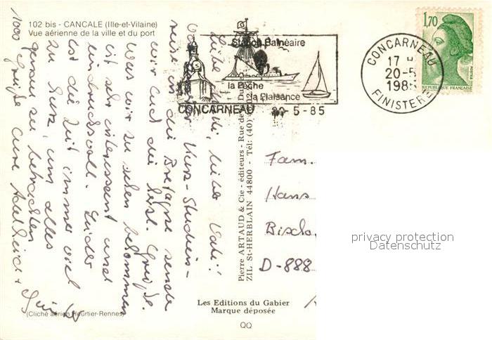 13129769 carte postale Cancale Fliegeraufnahme Port postalisch gelaufen Erhaltung siehe scans [NatalD47] KatCode: 11170035435049