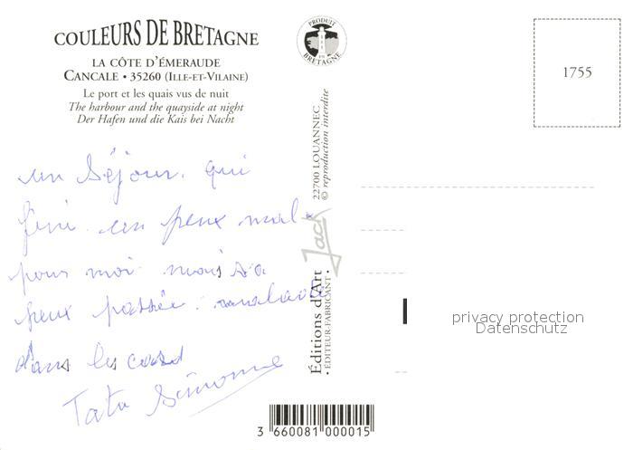 13593219 Cancale Le port et les quais vus de nuit postalisch nicht gelaufen Erhaltung siehe scans [FriedD77] Frie Katcode 11170035435049