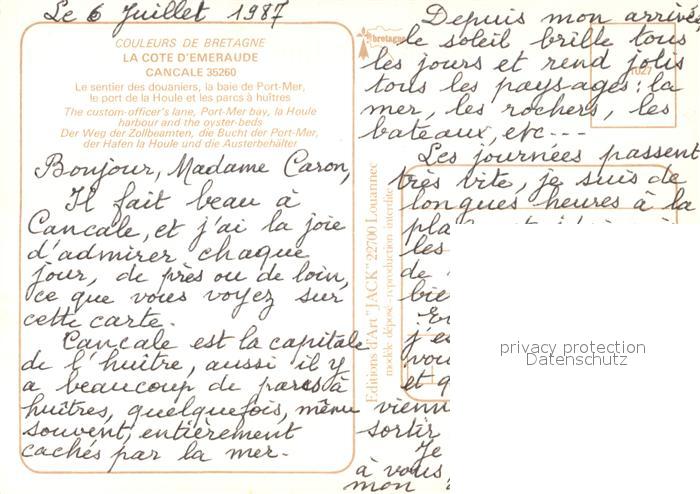 13580971 Cancale Le sentier des douaniers la baie de Port Mer le port de la Houle et les parcs a huitres postalisch nicht gelaufen Erhaltung siehe scans [WerneD78] KatCode: 11170035435049
