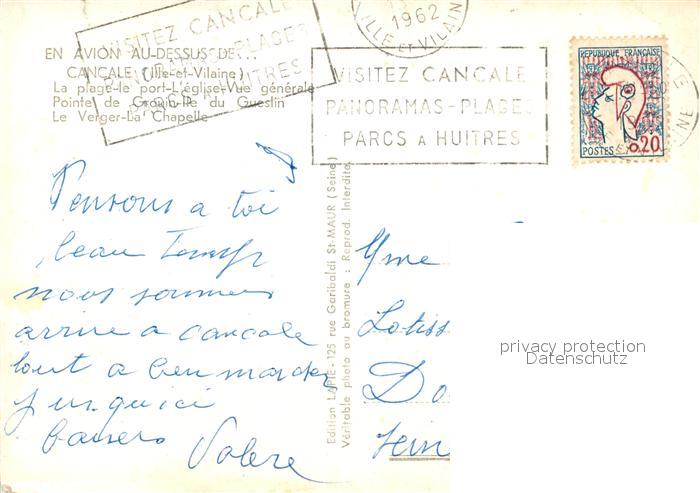 13582010 Cancale Plage Port Eglise Pointe de Grouin Ile du Gueslin Verger Chapelle vue aérienne postalisch gelaufen Erhaltung siehe scans [FriedD77] carte postale Frie Katcode 11170035435049