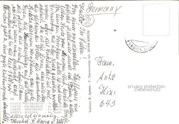 old postcard Candia Kreta Markt postalisch gelaufen Erhaltung siehe scans