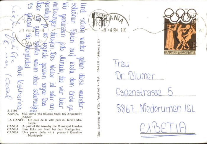 old postcard Canea Chania Canea Municipal Garden Stadtgarten postalisch gelaufen