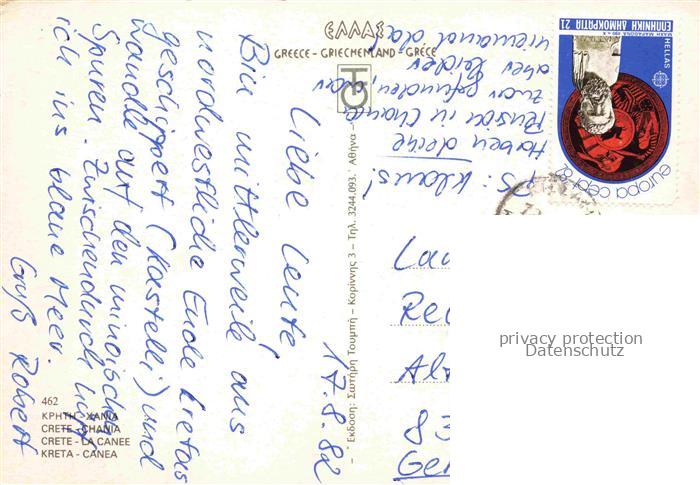 74035077 old postcard Canea Chania Crete GR Hafeneinfahrt Leuchtturm Fischkutter postalisch gelaufen Erhaltung siehe scans [FriedD77] KatCode: 11190