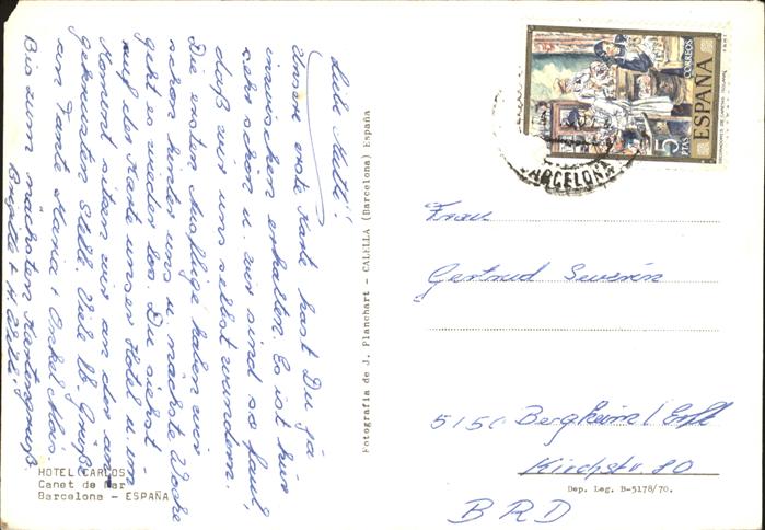old postcard Canet de Mar Hotel Carlos Piscina postalisch gelaufen Erhaltung siehe scans