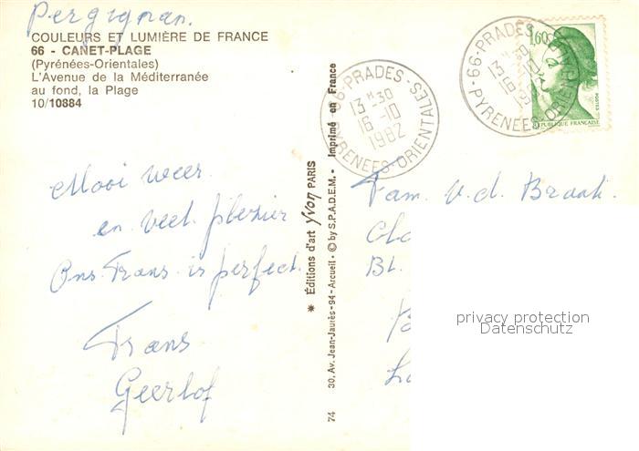 13059203 carte postale Canet Plage Avenue de la Mediterranee au fond la Plage postalisch gelaufen Erhaltung siehe scans [WerneD78] KatCode: 11170066266037