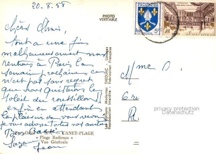 13582086 Canet Plage Plage Radieuse postalisch gelaufen Erhaltung siehe scans [FriedD77] carte postale Frie Katcode 11170066266037